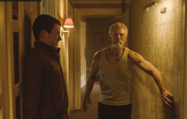 The film takes place in Detroit, which has come to be seen as the go-to metaphor for a city of the dead, what with other recent horror fare such as Only Lovers Left Alive (2013) and It Follows (2014) taking place there as well. It proves an effective background here, too, as much of the action takes place within a single, well-maintained house in a neighborhood of ruins – homes left abandoned to rot, having been vacated by those who’ve fled for greener economic pastures. The Blind Man (Stephen Lang) enjoys this seclusion as he’s gone into hiding, having lost his eyesight in the Gulf War as well as his beloved daughter in a tragic auto accident. Rumor has it he received a hefty settlement because of this and that he has it all in cash, secured in his house. Rocky, Alex and Money (Jane Levy, Dylan Minnette and Daniel Zovatto) are counting on this, as these three young, aimless adults are tired of the small scores they’ve been getting knocking over random homes. They need the Blind Man’s cash and they’ll do anything to get it.