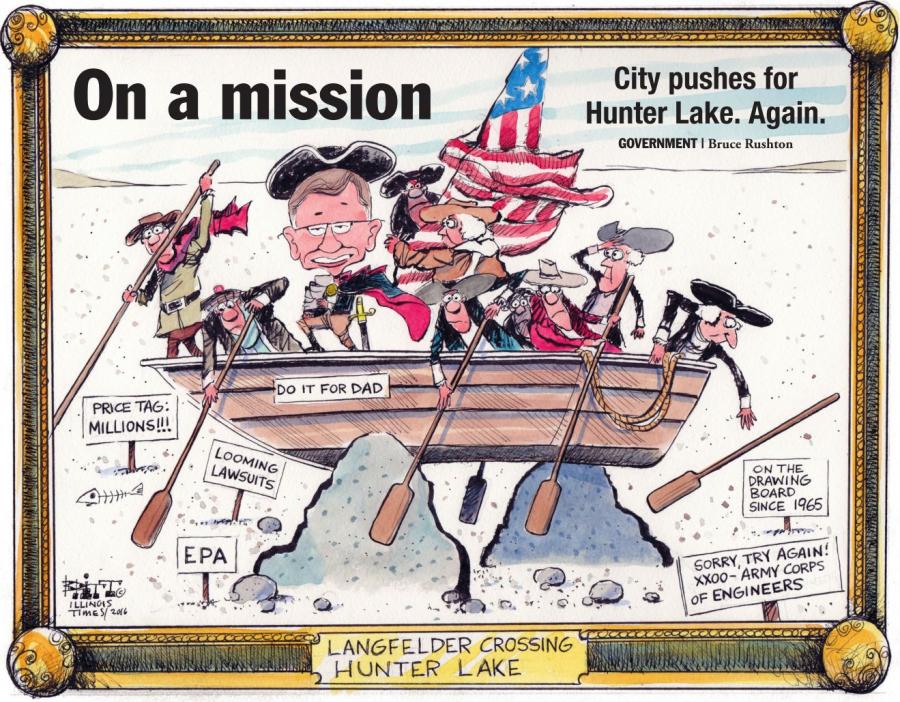 Langfelder blames a lack of sustained political support from past mayors and aldermen for Hunter Lake’s failure to reach fruition.