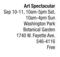 Soak up the last days of summer during the Springfield Park District’s nationally ranked art extravaganza featuring fine arts and crafts and live carillon music plus activities and programs for children. The two-day festival was founded 11 years ago by Rees Carillon Society member Barb Walker and attracts between 5,500 and 6,500 attendees annually. The art show features more than 50 regional and national artists offering collector and museum-quality fine arts and crafts at a variety of price points, with most pieces ranging from $50 to $7,500. Other attractions include hourly carillon concerts and musical performances by Phil Steinberg and others. Both festival admission and parking are free; admission to the Kids’ Place costs $1.50 per child. For more information about the Art Spectacular, visit http://carillon-rees.org/Events/Art-Spectacular.