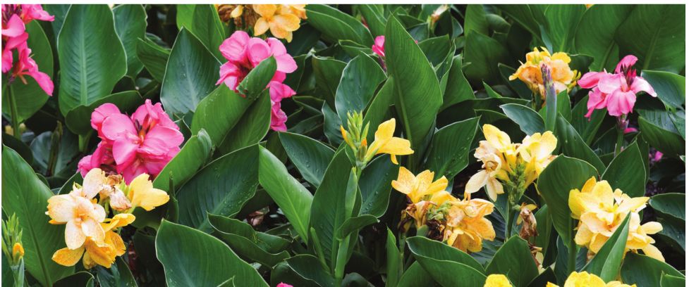 Cannas are an easy-care tropical plant that provides beautiful foliage and long-lasting blooms. Repeated blooms are encouraged by deadheading spent flowers. This versatile plant comes in a variety of leaf colors and can range from one foot to more than six feet tall. For the greatest foliage color and fullest blooms, place cannas in full sun with plenty of water and healthy soil.