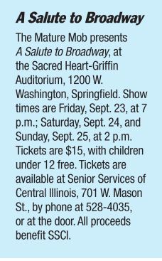 A double anniversary such as this calls for a celebration – perhaps one incorporating some of Broadway’s greatest hits. That’s what that talented troupe of performers known collectively as the Mature Mob is doing this year. A Salute to Broadway features songs, dances and sketches dealing with the Great White Way.