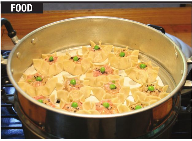 little cup. The open-top dumplings are then steamed.