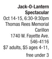 Show your support for the Thomas Rees Memorial Carillon and the Washington Park Botanical Gardens by attending the 2016 Jack-O- Lantern Spectacular. The annual pumpkin party showcases the 2,016 Jack-O-Lanterns that were carved in Washington Park the weekend prior. Admission is $7 for adults, $5 for children ages 4-11, and free to ages 3 and under. Since parking is limited in Washington Park due to bridge construction, free parking will be available at Barney’s Furniture, located at 1987 Wabash Avenue, and a complimentary shuttle will be available to cart patrons between their cars and Washington Park. Food will be available to purchase from on-site vendors. For more information about the Jack-O-Lantern Spectacular, call 546-4116. For information about other Springfield Park District events, visit http://springfieldparks.org.