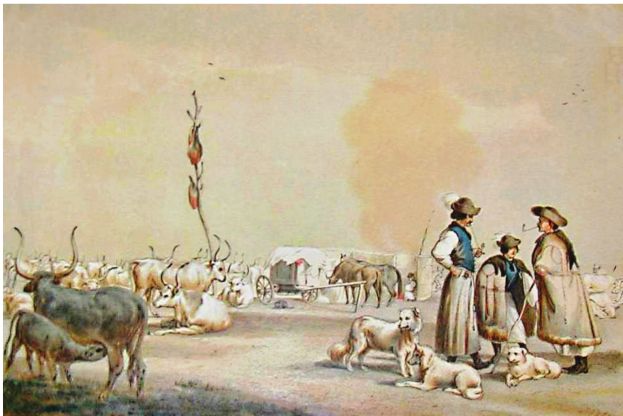 The plains of Hungary provided ideal terrain for raising cattle and became famous for producing an ancient breed called Hungarian Grey. Hungarian herdsmen known as Gulyás would go on cattle drives, sometimes lasting as long as a year, to sell their prized cattle all over Europe. Along the way, the weaker cows would be butchered and used to make a stew or soup. To preserve the meat without refrigeration, the herdsmen would cut the meat into cubes and cook it with onions in a heavy iron kettle over an open fire. The meat would be stewed slowly until the liquid was gone, and the remnants would be dried in the sun and stored in a bag made from a sheep’s stomach.