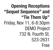 This Friday, visit DEMO Project for the opening receptions of “Sequel Sequence” by Mark Reamy and “Tie Them Up” by Angela Lopez. “Sequel Sequence” is a stunning installation that explores Vermont-based artist Mark Reamy’s fascination with the ways in which the present can influence and shape the past. Reamy’s exhibition “defies the laws of physics by allowing multiple light beams to coexist by pointing 35 mm slide projectors at a spinning, semi-translucent disco ball.” Each photograph represents a memory, a fixed moment in time. By combining these slides, Reamy is conflating accounts to form new stories in a constantly changing world. Chicago-based artist Angela Lopez’s “Tie Them Up” takes a look at two metaphorical wolves from an old Cherokee wives’ tale. The interdisciplinary artist utilizes video and sculpture to blend the two metaphorical wolves into one physical space. The two wolves represent the balance between good and evil. Both exhibitions are available for viewing during the reception from 6-8:30 p.m. on Friday, and on Saturday afternoons through Dec. 10 from 1-4 p.m. For more information about the DEMO Project, visit http://demoprojectspace.com.