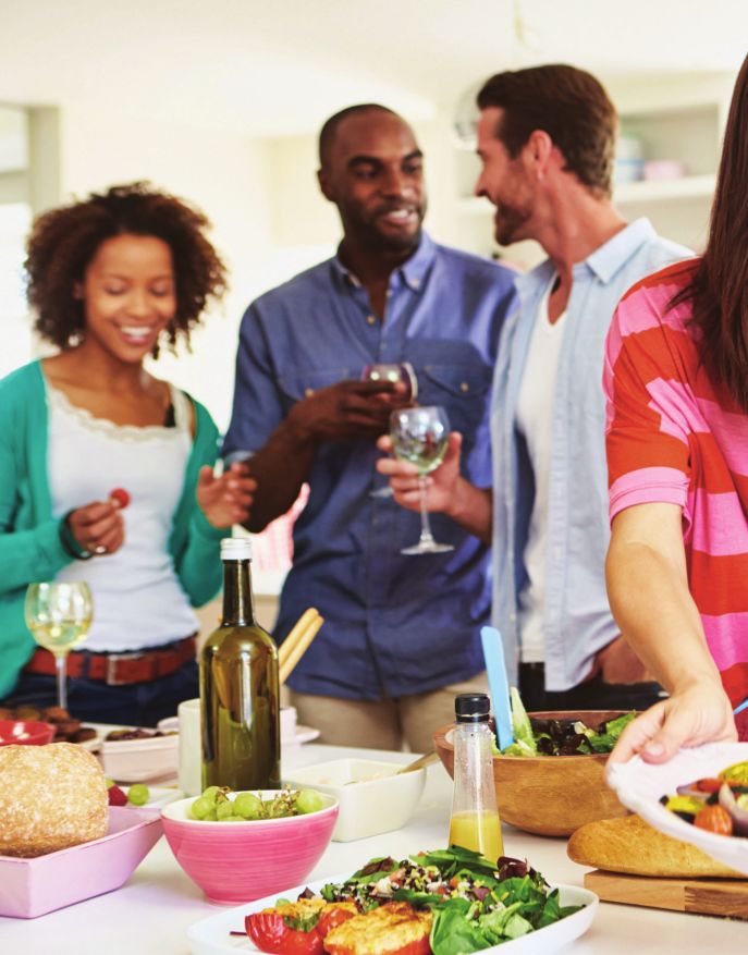 If you have a lot of leftover pantry items at the end of the party, consider taking them to a local soup kitchen, police station or firehouse to spread the holiday cheer.