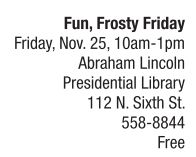 On Black Friday, escape the stress and headaches generated by crowds and shopping and enjoy some family-friendly fun at the Abraham Lincoln Presidential Library. The ALPL’s Fun Frosty Friday event features free games and activities for children of all ages and their families. Kids can create a coded message for and visit with Santa, race Hot Wheels cars, and play a life-sized version of Candy Land. Other activities include magic shows, face painting, readings of Twas the Night before Christmas, cookies and hot chocolate, and games. Although the event is free, the library will be accepting Angel Tree and monetary donations for Sojourn Shelter, a Springfield-based emergency shelter for victims of domestic violence. Additionally, attendees of Fun Frosty Friday will be able to enjoy a two-for-one admission deal at the Abraham Lincoln Presidential Museum immediately following the event. For more information about the Abraham Presidential Library and Museum as well as Fun Frosty Friday, visit http://alplm.org. See also