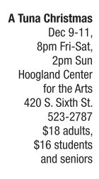 This weekend, travel to the zany town of Tuna, Texas, for an unforgettable Christmas play about the antics surrounding the citizens of small-town Texas. The play, which originally premiered as part of a three-part series by Joe Sears and Jaston Williams in 1989, offers both affectionate commentary and sizzling satire on smalltown Southern life and attitudes. Set in the third smallest town in Texas, A Tuna Christmas follows more than 20 eccentric characters through the holiday season. In keeping with the tradition of the original performance, the entire cast, which is comprised of more than 20 unique characters, will be performed by two male actors, Rich McCoy and Darin Harms, who have performed A Tuna Christmas since 2008. Tickets for A Tuna Christmas cost $18 for adults and $16 for students and seniors. For tickets and more information about A Tuna Christmas, visit http://hcfta.org.
