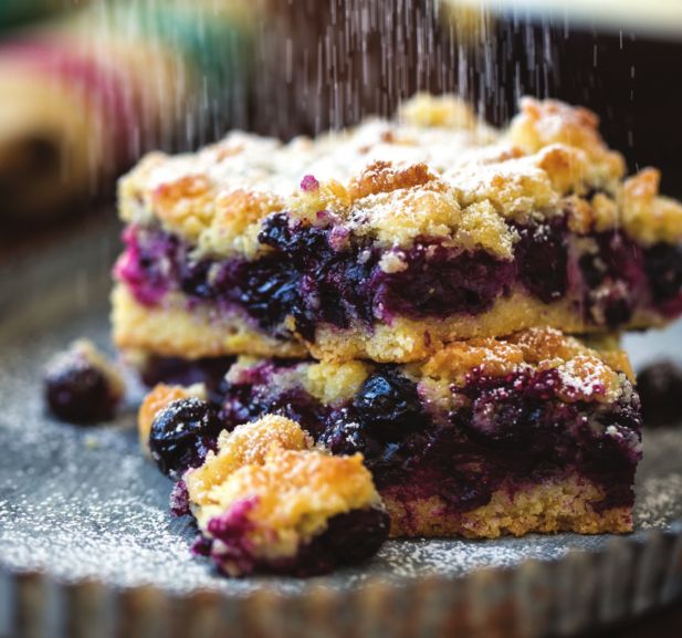 What goes together just as well as peanut butter and chocolate, if not better? Blueberries and lemon! You can’t help but pucker up with all the different ways that lemon shows up in these bars. So gobble them up with a kiss.
