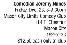 Jeremy Nunes is a 15-year comedy veteran best known for his clever observations, unique storytelling style, and ability to improvise with audience members. Initially from Dawson, Jeremy formally launched his comedy career in Chicago when he became involved with The Second City and iO Comedy Theaters, perfecting what would come to be known as his “front porch” style of comedy. As a clean comic, Jeremy is an in-demand performer who balances his mayoral duties in the small town of Dawson with travel to frequent corporate, church and college gigs. You may also recognize Jeremy from his involvement with The Travel Channel’s “The Layover,” The Break-Up, “Last Comic Standing” and his critically-acclaimed “Back Table Podcast.” For more information about Mason City Limits Comedy Club, visit http://masoncitylimits.com or call 482-5233.