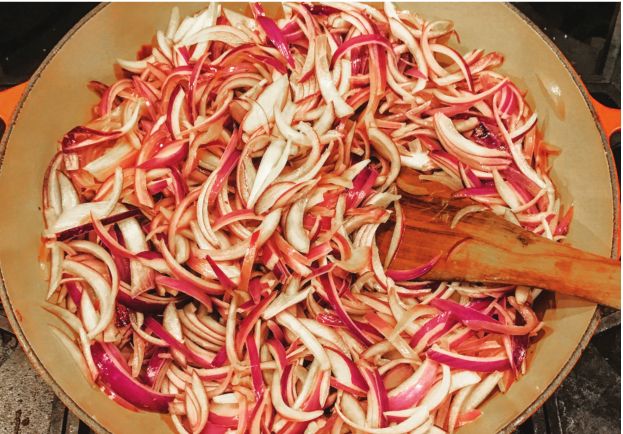• 6 lbs. red onions, peeled and thinly sliced