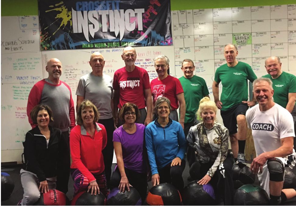Karen Witter, front row third from left, works out with the CrossFit Instinct “Longevity” group, in which the average age is 66.