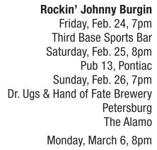 A man on the move, Rockin’ Johnny has really been rocking in the past year. He relocated to California from Chicago, toured mainland Europe between Halloween and Christmas, promoted a CD, recorded another CD, gigged nearly every night, and now he’s showed up on our doorstep to take the Springfield area by storm while doing dates in Chicago and Wisconsin in between these local shows. His last CD, Greetings from Greaseland, recorded at the famed Greaseland Studios in San Jose a few years back, prompted his move to the West Coast through working with blues singer and harpist Aki Kumar. His newest work of blues magic, Neoprene Fedora, again placed him in the same studio with the same recording team, this time for a two-day session that contains several original songs set for an official release date of March 15. Upcoming touring plans includes Russia (be careful, Johnny!) and France, plus a recording session in Minneapolis before heading back to California and continuing the music adventures of a modern blues master.