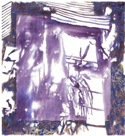 “Opal Hours” by Gualdoni also portrays a window, this one painted in acrylic and oil on canvas, featuring a representation of light so believable it almost cues the viewer to squint. This effect is in striking contrast to the dense, vibrant colors of “The Rainbow is a Stereoscopic Picture v1” by Hunt and Como’s “Doom Patrols,” with its framed black aluminum foil drawing your attention only to negate all light.
