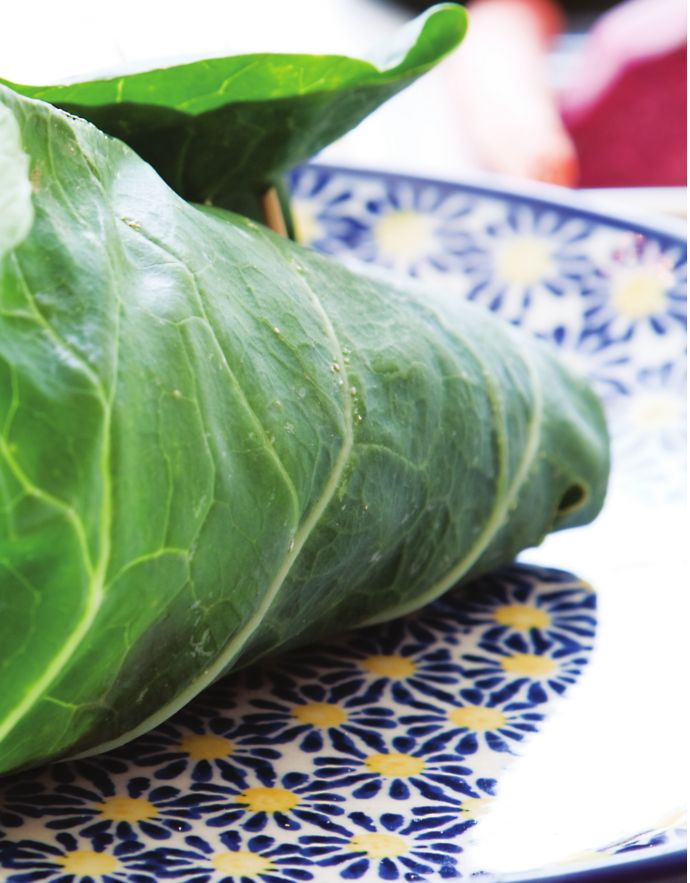the collard green a perfect vehicle for a wrap. The wrap holds is shape