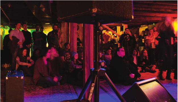 Those two initial living room shows whetted Black’s appetite for more, which led him to start working on his basement. “Downstairs there was less to worry about – like people damaging the floor and things like that. So I just started working on the unfinished basement. It’s a big concrete space that can’t be damaged easily.” That basement soon became the Radon Lounge, which debuted under that name in December 2011 with a holidaythemed concert. (Catherine Black does all of the graphics for Radon, including all posters. She also designed the website.) In 2012 they booked their first out-of-town bands and things developed from there.