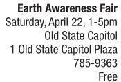 According to the United States Environmental Protection Agency, the first Earth Day was introduced in 1970 by Senator Gaylord Nelson as a way to promote legal and regulatory mechanisms that protect the environment onto the national agenda. On Saturday, April 22, the City of Springfield will celebrate Earth Day by hosting the 25 th annual Earth Awareness Fair from 1-5 p.m. on the grounds of the Old State Capitol downtown. The free, family-friendly event will feature at least 40 exhibitors with activities and information on topics such as recycling, alternative energy, native plants, local and organic foods, water conservation and more. Other attractions include live music, workshops hosted by the Henson Robinson Zoo and local beekeeper Arvin Pierce, plus bicycle activities, including a bicycle diagnostic station provided by Ace Bicycle Shop and a bike rodeo for ages 5-12 along with an all-ages group bike ride led by the Springfield Bicycle Club. For the full list of vendors and schedule of activities, find the Earth Awareness Fair on Facebook or visit http://springfield.il.us. See also