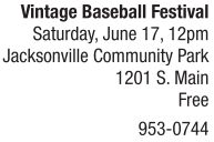 Step back in time on Saturday, June 17, and take in an afternoon of America’s pastime in accordance with 1860s rules and uniforms. The Vintage Baseball Festival will begin at noon and features three old-school baseball games played by three local teams. Game one begins at noon and features the Springfield Long Nine versus the Alton Giants. Game two is scheduled for approximately 1:30 p.m., and features the Alton Giants versus the Lafayette Square Cyclones. The final game of the day is slated for 3 p.m., and features the Lafayette Square Cyclones versus the Springfield Long Nine. Admission to all games is free and open to the public, and food will be available for purchase on site courtesy of the Jacksonville Dream Center Foundation. Questions about the Vintage Baseball festival and requests for more information may be directed to Todd at [email protected] or 953-0744. See also