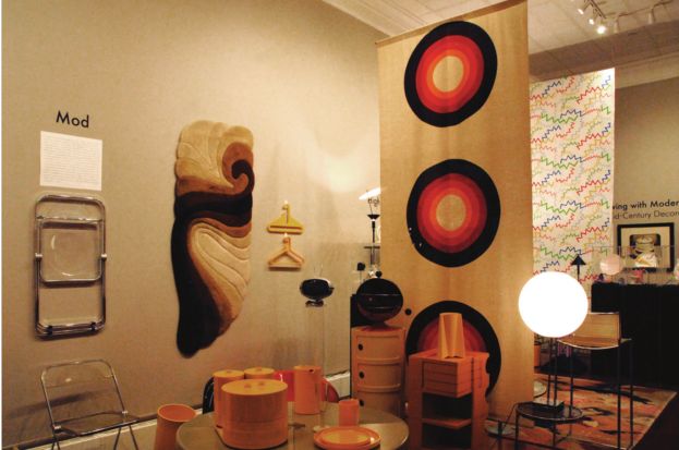 “Many [20 th -century] designers and consumers rejected traditional styles and materials as new horizons of form, color and use came into view influencing everything from appliances to furniture,” according to curator Anthony Rubano’s notes for “Living with Modernism: Mid-Century Decorative Art,” the mesmerizing, and sometimes overwhelming, exhibit on display in the M.G. Nelson Family Gallery through July 22. Featuring “tables, chairs, lamps, rugs, toasters, vacuum cleaners, china, flatware, toys and more” dating from the late 1920s through the 1980s, the exhibit manages to feel by turns uncanny and cozily familiar, with items which – depending on the viewer’s age – may have once been seen and used in one’s own home or that of a relative or perhaps just glimpsed in the background of an episode of “Mad Men.”