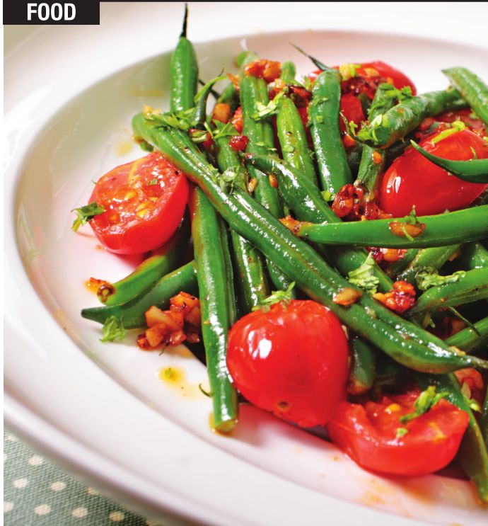 in a salad spinner or roll up in a towel. Combine the green beans with