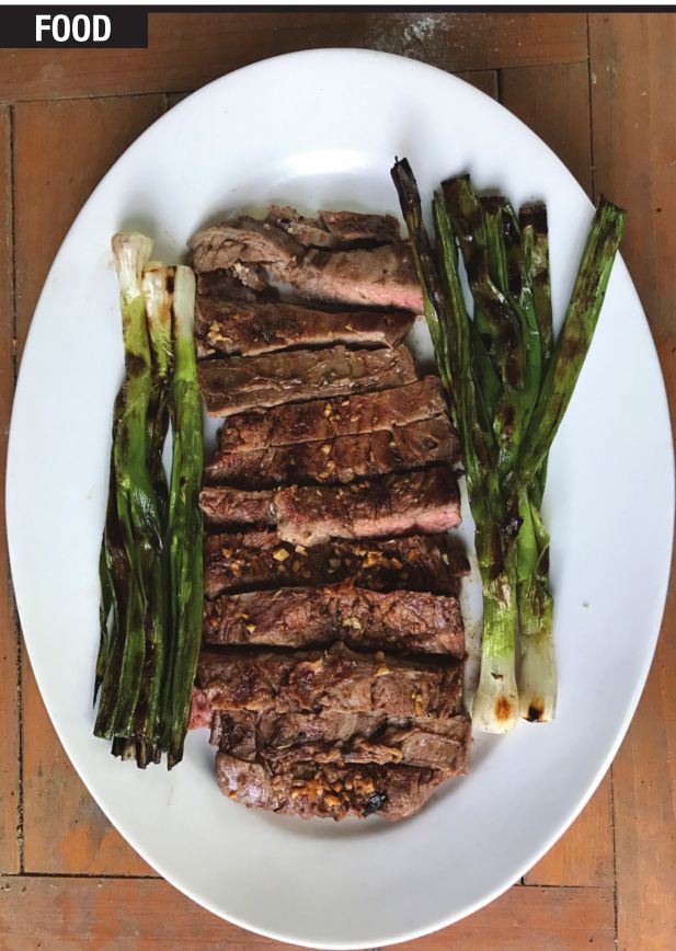 If we are going to give away food, we are going to need to cook cheaper cuts!” Skirt steak was traditionally an inexpensive cut that did not often end up on butcher counters because each steer only yields a small amount. However, around the early part of the last century, while the downtown hotel dining rooms served the fancy Porterhouses, Jewish restaurants in the area around Chicago’s Maxwell Street market and the Chicago stockyards offered comparatively inexpensive “Romanian Steaks” made with skirt steak. Noah and Rae Bernamoff in The Mile End Cookbook write that “the glory of the skirt steak” is that it’s relatively cheap and “full of flavor.” When seared on a skillet, “it cooks to a gorgeous, crisp-edged medium rare in just minutes.”