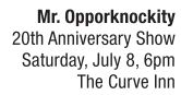It seems just like yesteryear! In 1997, Troy Roark and Doug Gholson broke on the scene as Mr. Opporknockity with “Lisa’s Shirt,” a bona fide, local hit song on WDBR-FM from the acoustic guitar-powered, high-energy vocal duo. The addition of Mark Sanders on drums and Tom Irwin on bass put them in the band category with a full-length CD release and lots of rockin’ shows. Soon Chris Camp joined the fray on harmonica, vocals and percussion. After Steve Myers became the full-time bassist, Mr. O was set to go. After winning Illinois Times’ “ Best of Springfield” rock band and original music categories for several years in a row, the group released a couple CDs, played to packed houses around the Midwest, opened for Journey at the Illinois State Fair Grandstand, were guests on NPR’s “Whad’Ya Know” program live at WUIS, and then quietly disbanded, except for occasional reunion shows. Guitar hero Michael Sullivan, who played some on the CDs, will join the band at the reunion. Congrats, guys, on 20 years in the biz. See also