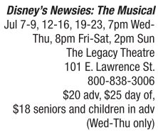 Central Illinois theater lovers are in for a treat this July, as Springfield’s Legacy Theatre has been selected as one of 12 regional theater groups across the United States to receive licensing rights for Disney’s hit Broadway musical titled Newsies: The Musical. The show, based on the real-life newsboy strike of summer 1899, follows charismatic newsboy Jack Kelly and his band of newspaper carries in their fight against publishing titans Joseph Pulitzer and William Randolph Hearst, who raised newspaper prices at the expense of carriers. Newsies was first presented onscreen in 1992 as a live action musical and quickly captured the hearts of millions. On March 20, 2012, the Broadway production of Newsies opened at New York City’s Nederlander Theatre and went on to break seven house attendance records during a 1,005-show run. In 2016, two years after a two-year national Broadway tour, Disney announced plans to license the show to 12 regional theaters for the 2017 season. Scott Richardson, director of The Legacy Theatre, says, “Imagine our surprise when we received a response … telling us that Disney had granted us the license to produce the show. … I believe there are only one or two productions in the country opening before us.” For more information about Newsies: The Musical, visit http://atthelegacy.com or call 800-838-3006. See also