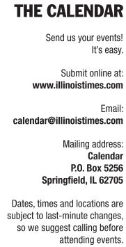 Images of Illinois Opening Reception Jul 6, 5:30-7pm Thu. Exhibition features winning photos from the 2017 Images of Illinois photography contest as well as a 4x6 print display of all 307 entries. Light refreshments provided. Free. springfi eldart. org. SAA Collective Gallery, 420 S. Sixth St., 544-2787.