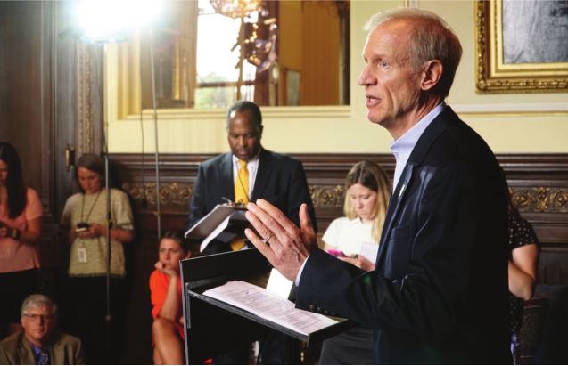 At issue at the moment is the fate of Senate Bill 1. Bruce Rauner has rewritten it in ways that kill at birth a new formula that would have finally remedied decades-old inequities in the way the state parcels out school aid. Under the proposal – which existed in large part because of the mulish persistence of state senator Andy Manar – every local school district would get what it gets now, but districts with lots of low-income kids would get more. Also, before Rauner’s amendatory veto, the state would have started funding Chicago Public Schools’ teacher pension and retiree health insurance costs, which costs are already being paid for every other district in the state by the state of Illinois.