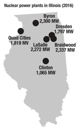 Today, Illinois is home to six operational nuclear power sites, at Braidwood, Clinton, Cordova, LaSalle County, Morris and Ogle County. Together they operate 11 nuclear reactors currently in use, more than any other state.