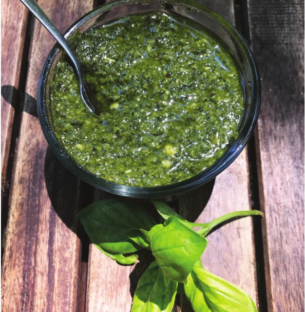 Basil Pesto This makes a delicious versatile sauce for pasta, chicken or fish.