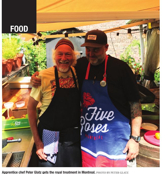 Montreal is the world’s second largest French-speaking city, which is why I was constantly reaching for my phone for my Google Translate app. If a chef walks behind you and warns: “Chaud!” you move closer to the prep table and hold still until he gets by you with his hot pan. When a recipe calls for farine, ufs, miel, lait and sel, you gather up flour, eggs, honey, milk and salt and say a little prayer.