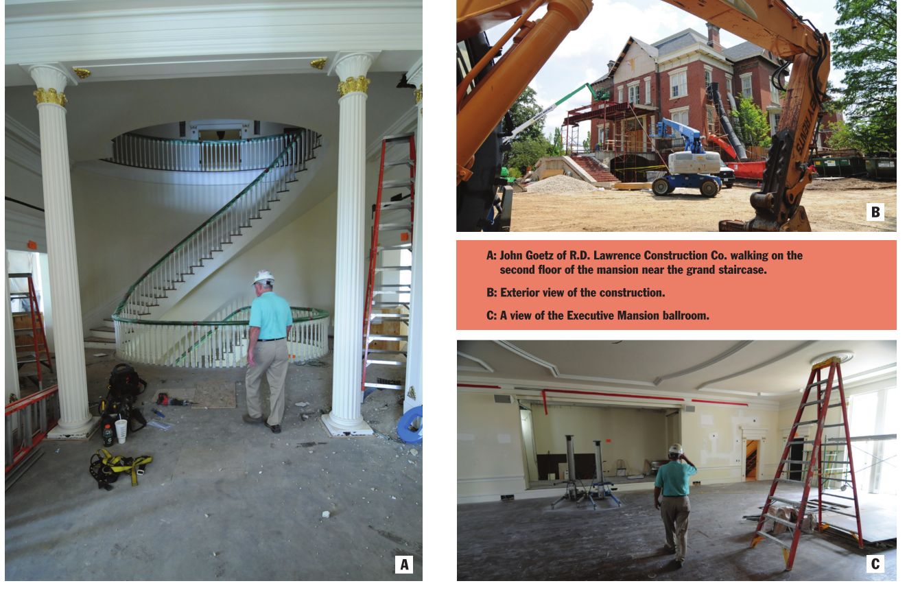 Nearly $2 million worth of work has been completed so far on the privately funded $15 million renovation project at the nation’s largest and one of the oldest official gubernatorial residences. The activity is addressing 45 years’ worth of major structural and life safety issues, plus it will transform the mansion into a more accommodating tourist destination and make it look more like it did around 1900 rather than 1972, the last time it experienced this type of construction activity.