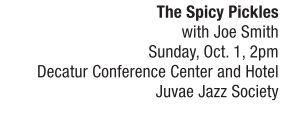 Based out of Denver, Colorado, these guys get around while spreading the great sounds of swing music and traditional jazz. Bandleader Joe Smith has a couple more groups in Denver (the Joe Smith Orchestra and The Red Hot Rhythm Rocket), but it’s the Pickles that really hit the road. Right now the octet has a new album out called Gin & Moonlight (two of our favorite things around the ranch), and are tearing up the highway in support of the new recording. The gig at the conference center will be the last in 2017 for the Juvae Jazz Society as they take a year off to reconfigure their Central Illinois Jazz Festival (see this week’s feature story). But Joe and his mighty, swinging band make a perfect combo to complement the tastes of Juvae fans and anyone with a desire to dance to the traditional sounds of classic jazz and swing. So be cool, stay hip, get on your dancing shoes and support our Juvae friends while seeing a really good band. See also