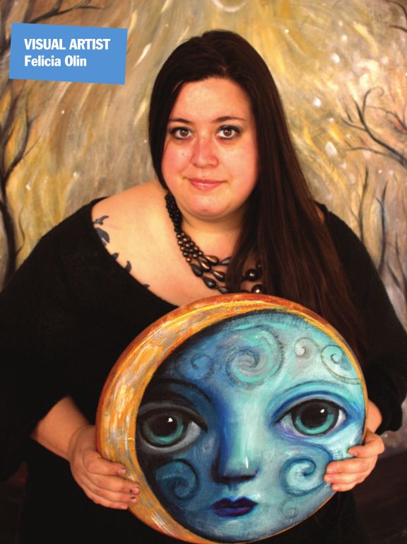 The artistic capacity of a city rests on the talent of its artists, and Felicia Olin has raised the level of the Springfield art scene by becoming successful through hard work, perseverance and ability. She’s steadily grown from her local beginnings to branch out to Chicago galleries and regional art fairs and shows. Her art is highly recognizable and now becoming highly sought after. From the peculiar faces of peering women to the obvious nature inflections and subtle humorous perceptions that inhabit the landscapes of her canvases, Felicia is making a statement and folks are getting the message. But perhaps the best part about her and what she does is the constant curious attitude she brings to art and life. We appreciate that and apparently so do our readers.