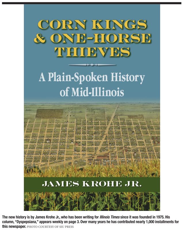 James Krohe Jr., Corn Kings & One-Horse Thieves: A Plain-Spoken History of Mid-Illinois. Carbondale: Southern Illinois University Press, 2017.