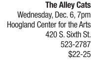 See The Alley Cats, the United States’ premiere doo-wop comedy act, on Wednesday, Dec. 6, at 7 p.m., at the Hoogland Center for the Arts, as part of their 2017 nationwide holiday tour. The seasonal serenade will feature classic and traditional holiday tunes paired with The Alley Cats’ signature comedy act. The Alley Cats, founded 30 years ago in 1987, are recognized today for their tight vocal harmonies and unruly brand of humor. The group has performed on every continent with appearances that range from performances for the U.S. military troops in Afghanistan and Iraq, the White House in 2001 for former U.S. president Bill Clinton, and on various NBC, CBS and PBS television programs. Tickets to The Alley Cats range from $22-25, and are available for purchase online at http://hcfta.org.