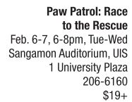 On Feb. 6 and 7, join Ryder and the Paw Patrol pups for an unforgettable live-action adventure during Paw Patrol: Race to the Rescue at Sangamon Auditorium. The show is set on the day of the Great Adventure Bay Race, where Adventure Bay’s Mayor Goodway and Foggy Bottom’s Mayor Humdinger are scheduled to face off. However, there is one problem: Mayor Goodway is missing! Can the Paw Patrol pups save the day and win the race in her place? Tickets to Paw Patrol: Race to the Rescue start at $19. Additionally, VIP (Very Important Pup) packages will be offered, featuring a premium seat, one special gift and exclusive access to a meet-and-greet session with three Paw Patrol characters following the performance. To purchase tickets and seek out additional information for Paw Patrol: Race to the Rescue, visit http:// sangamonauditorium.org or call 206-6160.