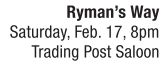 Relatively new on the Springfield band scene, Ryman’s Way takes their name from the Ryman Auditorium, the renowned building in Nashville that housed the Grand Ole Opry for decades during the heyday of classic country music. The venue again hosts live music, still inspiring thousands of performers and fans, just like it inspires bandmates Larry Robbins (drums), Adam Rice (vocals, guitar), Verl Prather (vocals, bass) and Steve Harbin (vocals, lead guitar, harmonica). Blessed with three equally strong lead vocalists, the quartet gets the advantage in diversity by using Adam (from Decatur), Verl (from Springfield) and Steve (from Greenview) to range from old country to classic rock and blues, plus a bunch of places in between as Larry (from Sherman) holds down the beat on whatever the guys can sing. By doing songs that are familiar, feel-good numbers from artists such as Haggard, Hank, Cash, CCR, Skynyrd, the Who and Petty, the hardworking band can play in front of all kinds of crowds varying in ages and tastes, and that could include you. See also