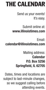 Elkhart Historical Society Dinner Lecture Feb 23, 5:30pm Fri. Presentation by Dr. Dennis Campbell titled “A Walk Back in Time Peoples of the Past Within Illinois.” $40. Reservations required by Feb 16. elkharthistoricalsociety.org. 947-2238. Wild Hare Cafe, 104 Governor Oglesby St., Elkhart, 947-2100.