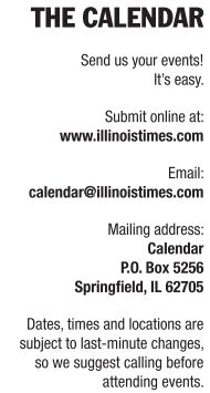 Celebrating Culture and History Feb 27, 11:30am-1:30pm Tue. A “Lunch and Learn Series” presentation by Elizabeth Alexander and Nell Clay, board members of the Central Illinois African American History Museum. $23 per person, includes hot buffet lunch. uis. edu. 206-6058. UIS Student Union, One William Maxwell Lane, 206-6581.
