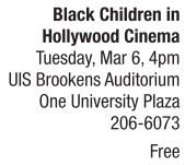 On Tuesday, Mar. 6, join Debbie Olson, Ph.D., assistant professor of English at Missouri Valley College, for an ECCE Speaker Series presentation that examines the depiction of African American children in the media against the ways in which African American children in the U.S. are prone to violence and criminality, and the ways in which such imagery affirms or subverts contemporary, popular constructions of childhood. Olson is the author of Lost and Othered Children in Contemporary Cinema, Potrayals of Children in Popular Culture: Fleeting Images, The Child in Post-Apocalyptic Cinema, as well as other books and monographs focusing on critical race theory, cultural studies, children in film and more. All ECCE Speaker Series programming is free and open to the public. For more information, visit http://uis.edu/speakerseries or call 206-8507.