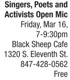 Take a stand against sexual assault this weekend during the “Singers, Poets and Activists Open Mic” event Friday, March 16, from 7-9:30 p.m. From 7-9 p.m., attendees are invited to perform their favorite or original songs, poems and thoughts surrounding the theme of “survivors, sexual/gender inequality and dreams of a better future.” In addition to the open mic session, this event will feature a #SurvivorLoveLetter station, where attendees will be encouraged to write letters of support to all survivors, themselves, or a survivor they know personally. The letters will be displayed at the NPR Illinois art gallery throughout the month of April, which is sexual assault and awareness month. Additionally, a sign-up sheet will be available to those who interested in reading their love letters on NPR Illinois WUIS during April. This event is hosted by the Prairie Center Against Sexual Assault in partnership with NPR Illinois and the Black Sheep Café. For more information, visit http://prairiecasa.org. See also