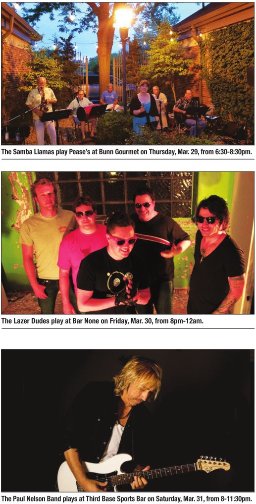 Samba Llamas Pease’s at Bunn Gourmet, 6:30-8:30pm.