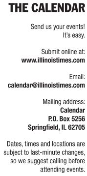 Stillness Exhibition Apr 14-18. Exhibition celebrates the genre of still life as a refl ection of our modern life. $5 adults; free admission to members, youth, seniors, military, veterans. On display through Jun 3. illinoisstatemuseum.org. 558-6696. Illinois State Museum, 502 S. Spring St., 782-7386.