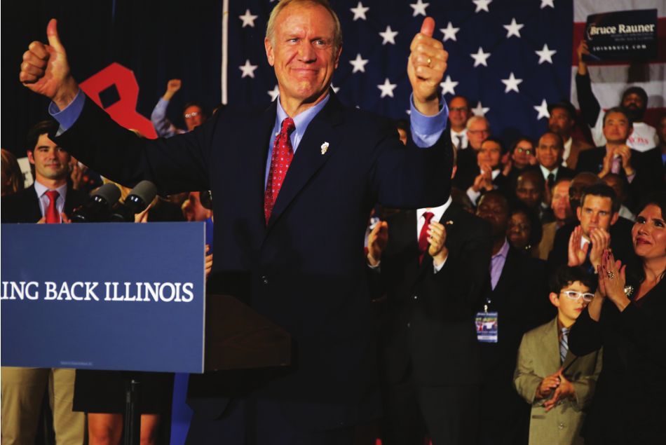 “However bad you think government might be,” Bruce Rauner tells an audience, “it’s worse.” Rauner, a Republican governor seeking re-election, has plenty of reasons to portray his state as fundamentally broken. It’s a way to explain why he hasn’t been able to make the big changes in Illinois he promised when he ran four years ago. But it’s also a great line for a knowing audience, and the crowd of call center workers in Moline, on the Mississippi River, laughs appreciatively.