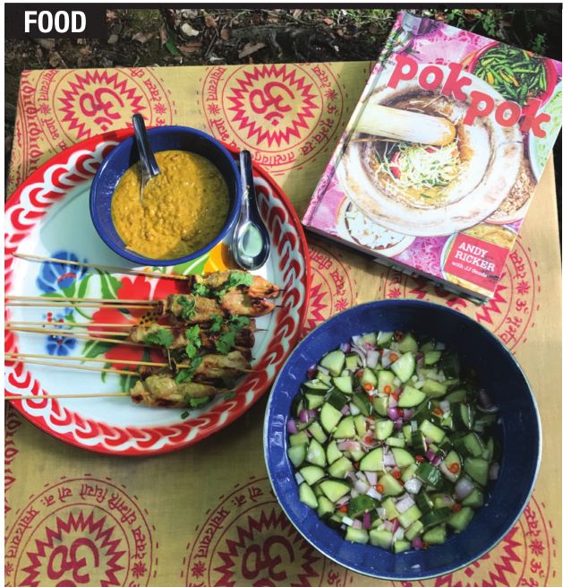 So I had to chuckle when I was reading the introduction to a recipe for Thai pork satays from the cookbook Pok Pok: Food and Stories from the Streets, Homes, and Roadside Restaurants of Thailand by Andy Ricker (Ten Speed Press 2013). Andy Ricker is an American chef who is probably the world’s leading expert on Northern Thai cooking. He is the chef/owner of Pok Pok restaurant in Portland, Oregon. He writes: “We honkies love this stuff. Tender meat soaked in a sweet coconut marinade – it’s a no-brainer. That’s why I put it on Pok Pok’s menu early on. Yet now, if I had my druthers, I’d take it off. It’s not just that the slicing and skewering is timeconsuming. It’s the reality that if the words “peanut sauce” appear on a menu, you get people who want to order peanut sauce by the liter to dump on rice. If I seem grumpy, it’s because I’m tired of seeing people disrespect what I consider to be one of the greatest cuisines on earth. Everyone likes hollandaise sauce, too, but you don’t get people requesting it and dumping it on top of every dish you order at a good French bistro.”