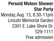 On Monday, Aug. 13, from 8:30-11 p.m., join the University of Illinois Springfield Astronomy- Physics Program, Lincoln Memorial Garden and the Sangamon Astronomical Society for a special star party in honor of the Perseid Meteor Shower. The Perseid Meteor Shower occurs annually in August when the earth passes through a debris steam crossing its orbit from the Comet Swift-Tuttle, resulting in more fireball-type meteors than any other meteor shower. During the peak of the Perseid shower, there is potential to spot more than 60 meteors per hour. Like all star parties, the Perseid Meteor Shower Star Party is weather dependent, and may be canceled due to cloudy or inclement weather. For weather updates, contact John Martin, UIS associate professor of astronomy-physics after 7 p.m. on Aug. 13 via phone at 206-8342 or check @UISObservatory on Twitter.