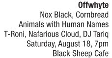 Offwhyte, born as Ryan Fernandez on Aug. 22, 1977, in Pell City, Alabama, now resides in Springfield as his music is heard around the world. He defines himself an “American rapper, vocalist, dancer, producer and videographer, known for a sound that is at once complex, intellectual, wholesome and true to the soul.” There’s plenty to discover in the world of Offwhyte, including several projects under the hip-hop label Galapagos4 of which he is a founding member, a position that allowed Ryan to perform in Europe, Japan and the U.S. His latest release (April 2018), titled Both Sides of the Mississippi, is distributed by The Orchard Enterprises and is available online as well as physically on CD and vinyl LP. In his local history, before moving on to live and work in Chicago and Los Angeles for the last 20 years, Ryan grew up in town, graduating from Rochester High School and performing at Skank Skates in the 90s. Welcome back, Offwhyte, and congratulations on the album release party.