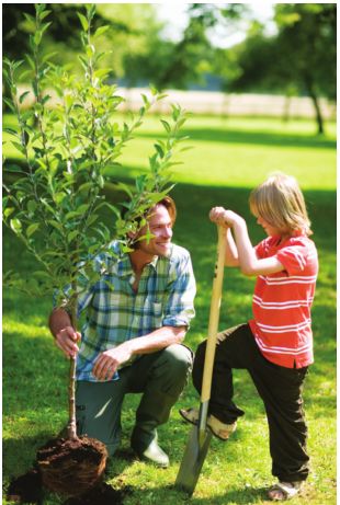 When ready to dig, Houle suggests digging a hole that is two to three times wider and not deeper than the root ball. Digging a hole deeper and then filling it back in will only cause the soil to settle and, over time, can cause tree stress, girdling roots, early fall coloration, reduced growth rate and can eventually lead to tree decline and death.